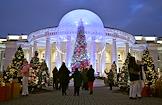 Виды Москвы. Новогоднее украшение города. Жанровая фотография. Фестивальная площадка "Московские сезоны" на улице Кузнецкий мост.