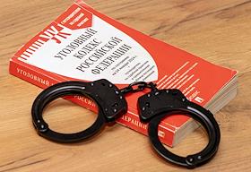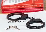 Жанровая фотография. Наручники и ключи на папке "Дело №" и Уголовный кодекс России.