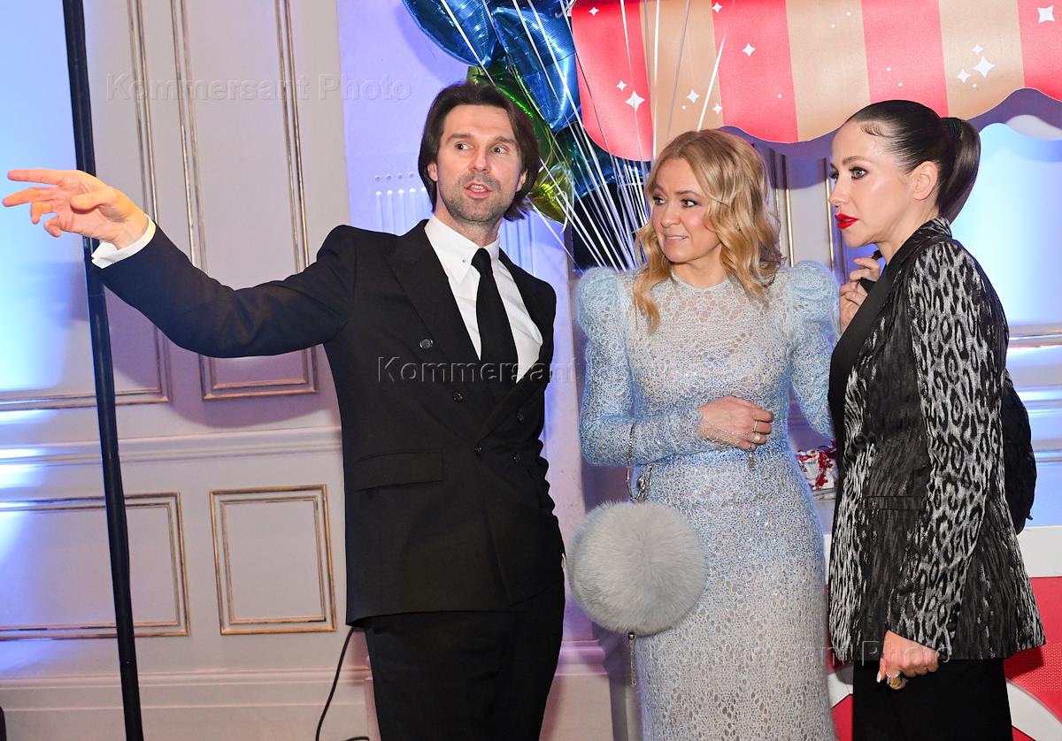 Новогодняя елка "Бал волшебных сказок" от Radio Monte Carlo в отеле Four Seasons Moscow. Слева направо: председатель совета директоров АО "Русская Медиагруппа" Сергей Бунин, продюсер Яна Рудковская и телеведущая Юлия Барановская на елке.