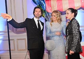Новогодняя елка "Бал волшебных сказок" от Radio Monte Carlo в отеле Four Seasons Moscow. Режиссер Клим Шипенко (слева) и актриса Елена Подкаминская (в центре) на елке.
