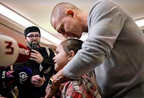Новогодняя елка "Бал волшебных сказок" от Radio Monte Carlo в отеле Four Seasons Moscow. Режиссер Клим Шипенко (в центре) с дочерью на елке.