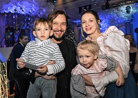 Новогодняя елка "Бал волшебных сказок" от Radio Monte Carlo в отеле Four Seasons Moscow. Режиссер Роман Прыгунов (слева) с семьей на елке.