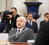 Рабочая поездка президента России Путина в Северо-Западный федеральный округ. Неформальная встреча лидеров стран Содружества Независимых Государств (СНГ) в Государственном Эрмитаже. Президент Белоруссии Александр Лукашенко во время встречи.