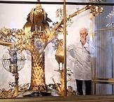 Реставратор-часовщик Михаил Гурьев у часов "Павлин" в Государственном Эрмитаже.