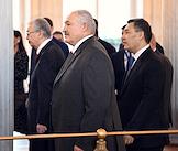 Рабочая поездка президента России Путина в Северо-Западный федеральный округ. Посещение главами государств – участников Содружества Независимых Государств (СНГ) Государственного Эрмитажа. Слева направо: президент Казахстана Касым-Жомарт Токаев, президент Белоруссии Александр Лукашенко и президент Киргизии Садыр Жапаров во время экскурсии в Государственном Эрмитаже.