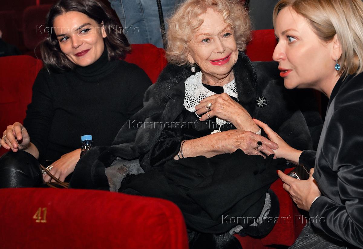 Премьера фильма "Буратино" режиссера Игоря Волошина в кинотеатре "КАРО 11 Октябрь". Слева направо: актрисы Полина Лазарева, Светлана Немоляева и министр культуры России Ольга Любимова на премьере.