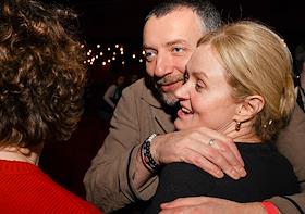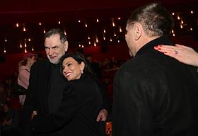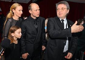 Премьера фильма "Буратино" режиссера Игоря Волошина в кинотеатре "КАРО 11 Октябрь". Режиссер Алексей Агранович (в центре) и актриса Анна Михалкова (справа) на премьере.