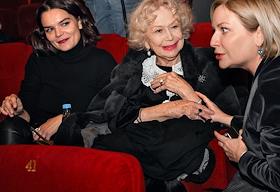 Премьера фильма "Буратино" режиссера Игоря Волошина в кинотеатре "КАРО 11 Октябрь". Слева направо: актрисы Полина Лазарева, Светлана Немоляева и министр культуры России Ольга Любимова на премьере.