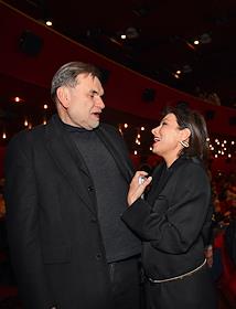 Премьера фильма "Буратино" режиссера Игоря Волошина в кинотеатре "КАРО 11 Октябрь". Актер Юрий Борисов (слева) и актриса, режиссер Надежда Михалкова (справа) на премьере.