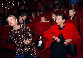 Премьера фильма "Буратино" режиссера Игоря Волошина в кинотеатре "КАРО 11 Октябрь". Актриса Софья Эрнст (слева) и хореограф Алла Сигалова (справа) на премьере.
