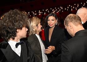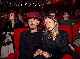 Премьера фильма "Буратино" режиссера Игоря Волошина в кинотеатре "КАРО 11 Октябрь". Актриса Виктория Исакова (слева) и Лев Зулькарнаев (в центре) на премьере.