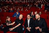 Премьера фильма "Буратино" режиссера Игоря Волошина в кинотеатре "КАРО 11 Октябрь". Слева направо: актеры Виталия Корниенко, Александр Петров, Степан Белозеров и Марк Эйдельштейн на премьере.