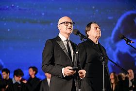 Премьера фильма "Буратино" режиссера Игоря Волошина в кинотеатре "КАРО 11 Октябрь". Глава Кинокомпании СТВ Сергей Сельянов (слева) и глава агентства JM Create and Connect, член совета директоров "Роскино" Евгения Маркова (справа) на премьере.