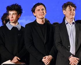 Премьера фильма "Буратино" режиссера Игоря Волошина в кинотеатре "КАРО 11 Октябрь". Продюсер Александр Андрющенко (в центре), актеры Марк Эйдельштейн (слева) и Александр Яценко (справа) на премьере.