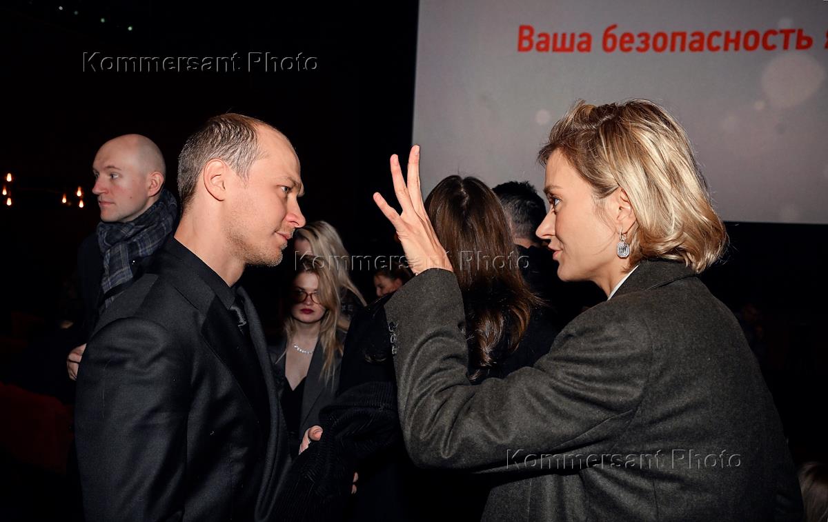 Премьера фильма "Буратино" режиссера Игоря Волошина в кинотеатре "КАРО 11 Октябрь". Режиссер Алексей Агранович (в центре) и актриса Анна Михалкова (справа) на премьере.