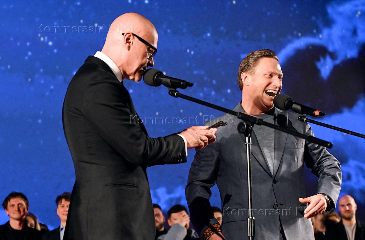 Премьера фильма "Буратино" режиссера Игоря Волошина в кинотеатре "КАРО 11 Октябрь". Режиссер, продюсер, актер Федор Бондарчук (слева) и генеральный директор ООО "Маер Групп" Константин Майор (справа) на премьере.