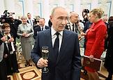 Церемония вручения государственных наград в Екатерининском зале Кремля. Президент России Владимир Путин (в центре) после церемонии.