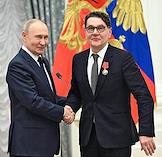 Церемония вручения государственных наград в Екатерининском зале Кремля. Президент государственного учреждения культуры города Москвы "Московский международный дом музыки" Владимир Спиваков на церемонии.