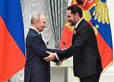 Церемония вручения государственных наград в Екатерининском зале Кремля. Пианист Денис Мацуев (второй справа) на церемонии.