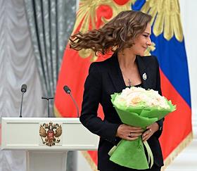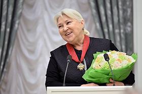 Церемония вручения государственных наград в Екатерининском зале Кремля. Певица, актриса, общественный деятель Елена Север (Киселева) на церемонии.