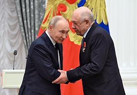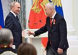 Церемония вручения государственных наград в Екатерининском зале Кремля. Президент Союза архитекторов России Николай Шумаков на церемонии.