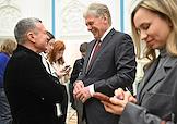 Церемония вручения государственных наград в Екатерининском зале Кремля. Жанровая фотография. Официанты на церемонии с подносом бокалов с шампанским.