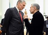 Церемония вручения государственных наград в Екатерининском зале Кремля. Ректор МГИМО Анатолий Торкунов (слева) и председатель союза кинематографистов России, кинорежиссер Никита Михалков на церемонии.