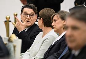 Церемония вручения государственных наград в Екатерининском зале Кремля. Слева направо: директор института законодательства и сравнительного правоведения при правительства России Талия Хабриева, ректор МГИМО Анатолий Торкунов, председатель союза кинематографистов России, кинорежиссер Никита Михалков и председатель правления, президент ПАО "Транснефть" Николай Токарев на церемонии.