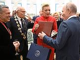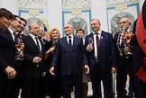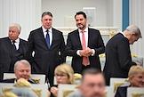 Церемония вручения государственных наград в Екатерининском зале Кремля. Слева направо: заслуженный мастер спорта СССР Владимир Мышкин, генеральный директор Спортивно-развлекательного квартала "Парк легенд" Алексе Касатонов и художественный руководитель ФГБУК "Севастопольский государственный театр оперы и балета" Ильдар Абдразаков на церемонии.