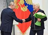 Церемония вручения государственных наград в Екатерининском зале Кремля. Бывший главный тренер сборной России по синхронному плаванию Татьяна Покровская во время церемонии.