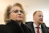 Судебное заседание по делу лидера "Левого фронта" Сергея Удальцова, обвиняемого в оправдании терроризма в интернете, во Втором западном окружном военном суде. Председатель комитета Государственной думы (ГД) России по защите семьи, вопросам отцовства, материнства и детства Нина Останина (слева) и член комитета ГД России по бюджету и налогам Денис Парфенов (справа) перед началом заседания суда.