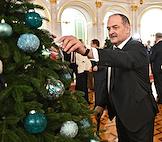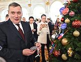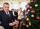 Заседание Государственного совета России, посвященное вопросам подготовки кадров для экономики России, в Георгиевском зале Большого Кремлевского дворца. Губернатор Курской области Александр Хинштейн перед началом заседания участвует в новогодней акции "Елка желаний".