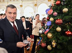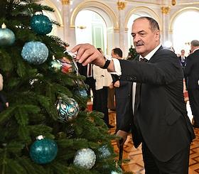 Заседание Государственного совета России, посвященное вопросам подготовки кадров для экономики России, в Георгиевском зале Большого Кремлевского дворца. Глава Республики Дагестан Сергей Меликов перед началом заседания участвует в новогодней акции "Елка желаний".