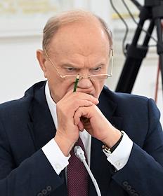 Заседание Государственного совета России, посвященное вопросам подготовки кадров для экономики России, в Георгиевском зале Большого Кремлевского дворца. Лидер КПРФ, руководитель фракции КПРФ в Государственной думе России Геннадий Зюганов перед началом заседания.