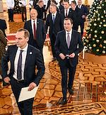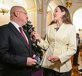 Заседание Государственного совета России, посвященное вопросам подготовки кадров для экономики России, в Георгиевском зале Большого Кремлевского дворца. Полномочный представитель президента России в Уральском федеральном округе (УФО) Артем Жога (слева) перед началом заседания участвует в новогодней акции "Елка желаний".