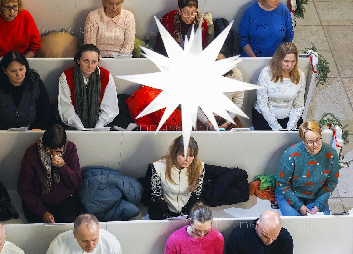 Рождественский сочельник в протестантском Кафедральном Соборе Пресвятой Марии. Верующие во время богослужения.