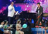 Рождественское гала-шоу Ильи Авербуха "Аллилуйя любви" во Дворце гимнастики Ирины Винер. Пианист, дирижер Сергей Жилин (слева) и фигурист Роман Костомаров (справа) во время шоу.