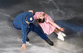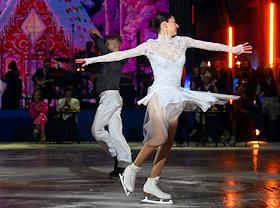 Рождественское гала-шоу Ильи Авербуха "Аллилуйя любви" во Дворце гимнастики Ирины Винер. Фигуристы Татьяна Тотьмянина и Максим Маринин во время выступления.