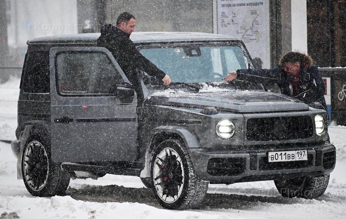 Виды Москвы во время снегопада. Жанровая фотография. Дорожное движение на улицах города.