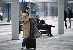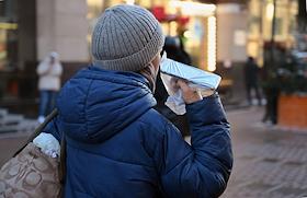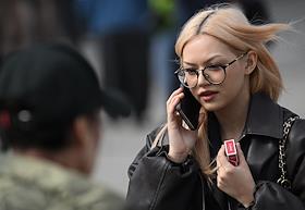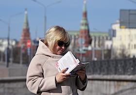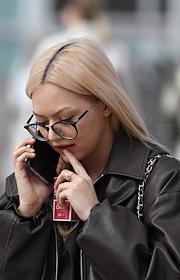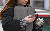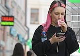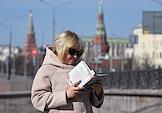 Виды Москвы. Жанровая фотография. Женщина держит мобильный телефон в целлофановом пакете.