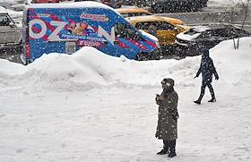 Виды Москвы во время снегопада. Улица Новокузнецкая. Жанровая фотография.