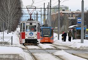 Виды Набережных Челнов. Жанровая фотография. Трамваи во время движения по маршруту.
