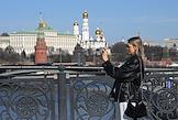 Жанровая фотография. Девушка с мобильным телефоном на мосту на фоне Кремля.