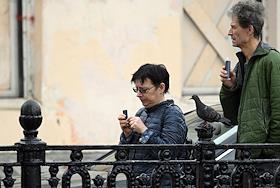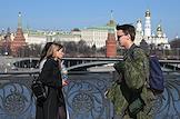Жанровая фотография. Люди на мосту на фоне Кремля.