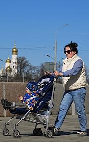 Жанровая фотография. Женщина с детской коляской на улице.