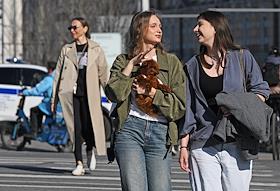 Жанровая фотография. Девушки идут по улице города.