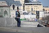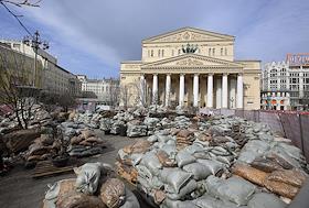 Жанровая фотография. Виды Москвы. Здание Государственного академического Большого театра (ГАБТ). Подготовка к открытию фестиваля "Московские сезоны" в сквере на площади перед ГАБТ.