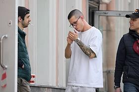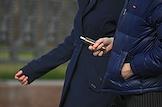 Жанровая фотография. Молодые люди курят сигареты на улице.