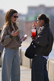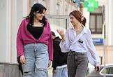 Жанровая фотография. Девушки во время прогулки по улице города.