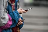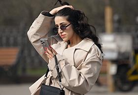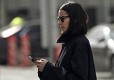 Жанровая фотография. Девушка читает в мобильном телефоне на улице.